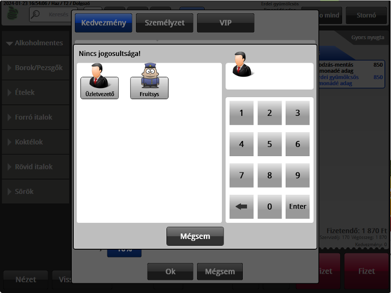 Ha nem rendelkezel a kedvezmény alkalmazásához szükséges jogosultsággal az alábbi ablak fog megjelenni. A listában látható felhasználók rendelkeznek a megfelelő joggal, hogy a kedvezményt alkalmazzák.